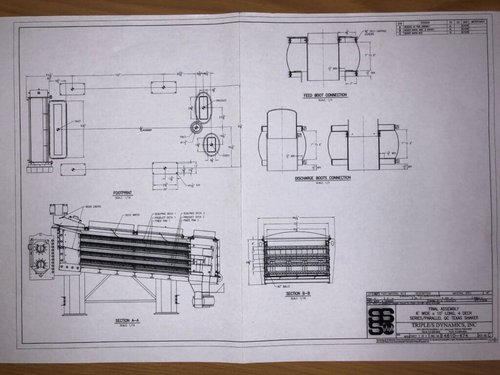 TEXAS SHAKER models are offered in a variety of sizes ranging from 3 x 6 single-deck to 8 x 10 ten-deck, with up to 800 square feet of screening area in a single machine. Today, the TEXAS SHAKER is at work across a broad range of industries, screening a wide variety of products including almonds, various grains, salt, limestone and potash.