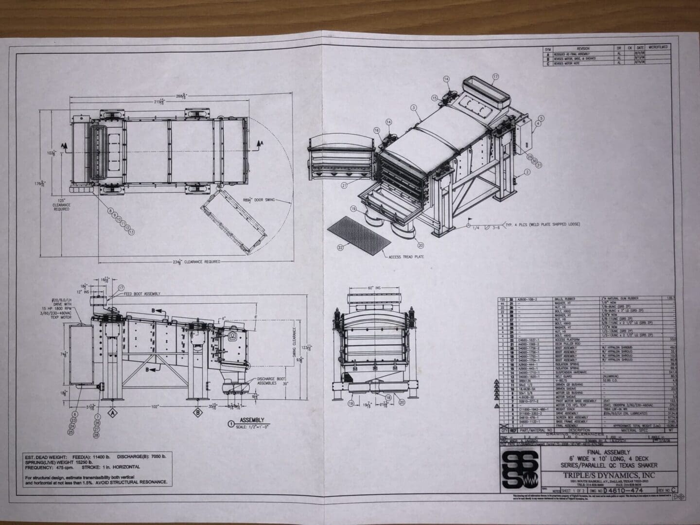 6′ x 10′ screens. Series/ Parallel QC Texas Shaker